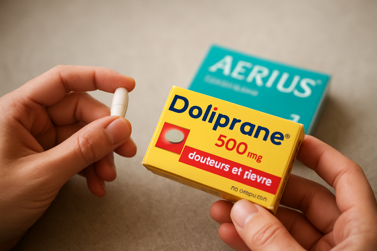 Même si le Doliprane et l’Aerius ne sont pas connus pour avoir des interactions majeures, d’autres médicaments que vous prenez pourraient interagir. Informez toujours votre médecin de tous les traitements en cours pour éviter des complications imprévues.